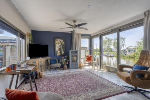 Vanuit de woning kijk je uit over het buiten IJ tot aan Durgerdam met een fraai uitzicht over het water en de aangemeerde zeilboten.